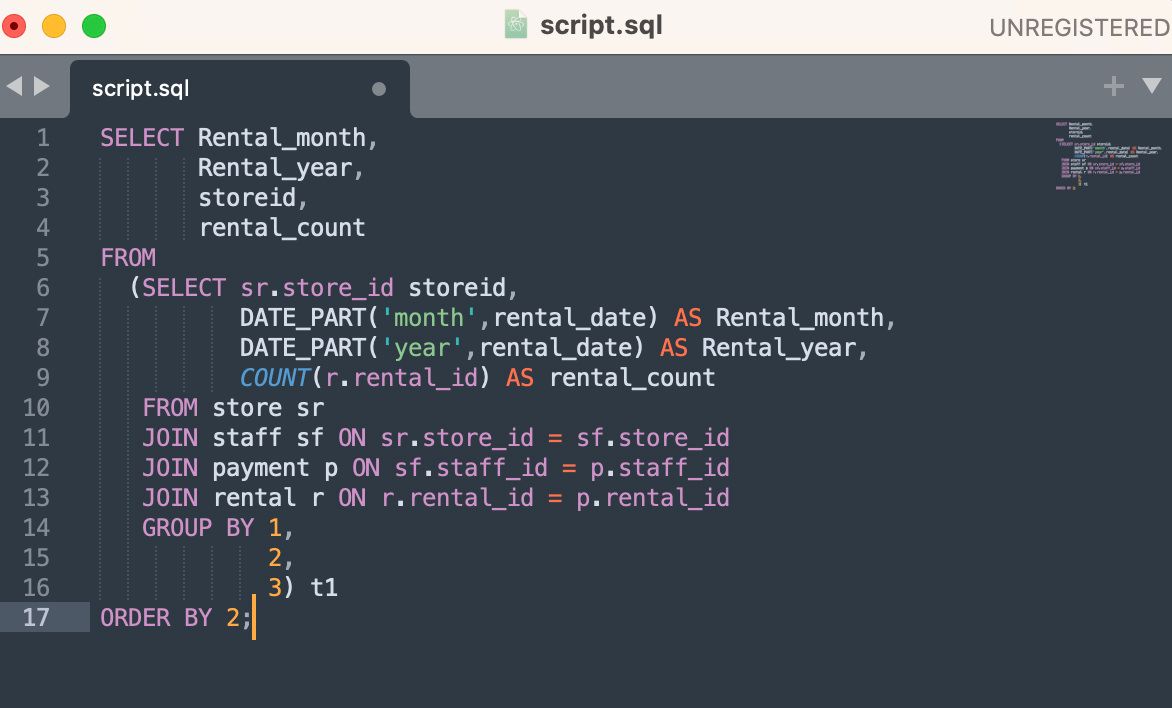date_part('month', rental_date) AS rental_month,